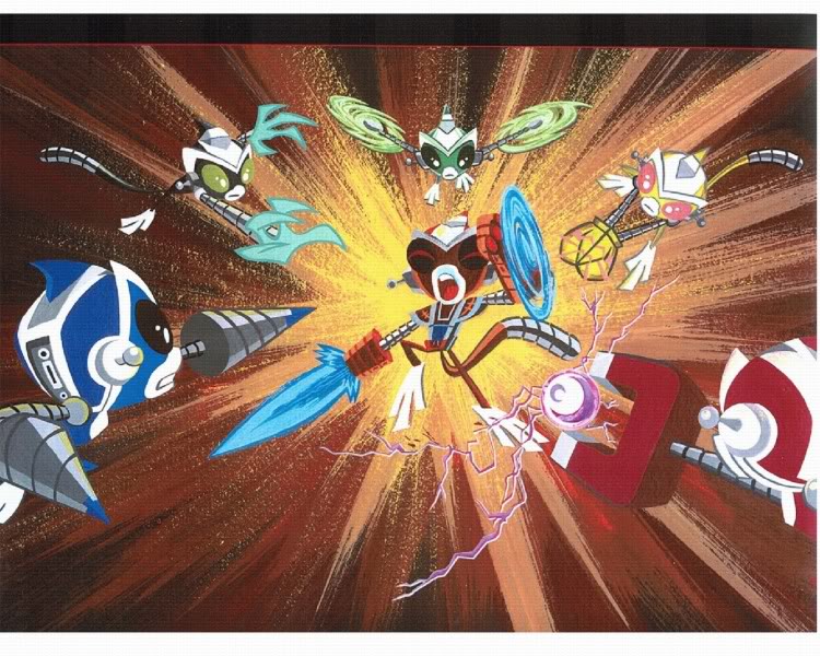 Na tomto obrázku v strede je Mandarin. Bol to bývalý vodca opíc. Ako zbraň má 2 rukavice, ktoré sa vedia premeniť na meč a štít.